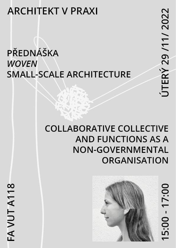Zveme Vás na přednášku slovenského tvořivého uskupení WOVEN. Přednáška bude probíhat v úterý 29.11.2022 od 15:00 do 17:00 v malé aule A118 na půdě FA VUT rámci předmětu Architekt v Praxi. Stejně jako všechny přednášky a diskuse se jedná o veřejně přístupnou událost.