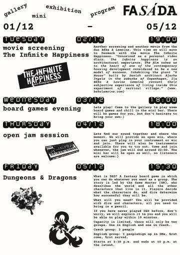 Pojďme si hrát! Přijďte si do galerie zahrát deskové hry a odpočinout si v minibaru. Budou tam pro vás hry, ale neváhejte si přinést vlastní :)
