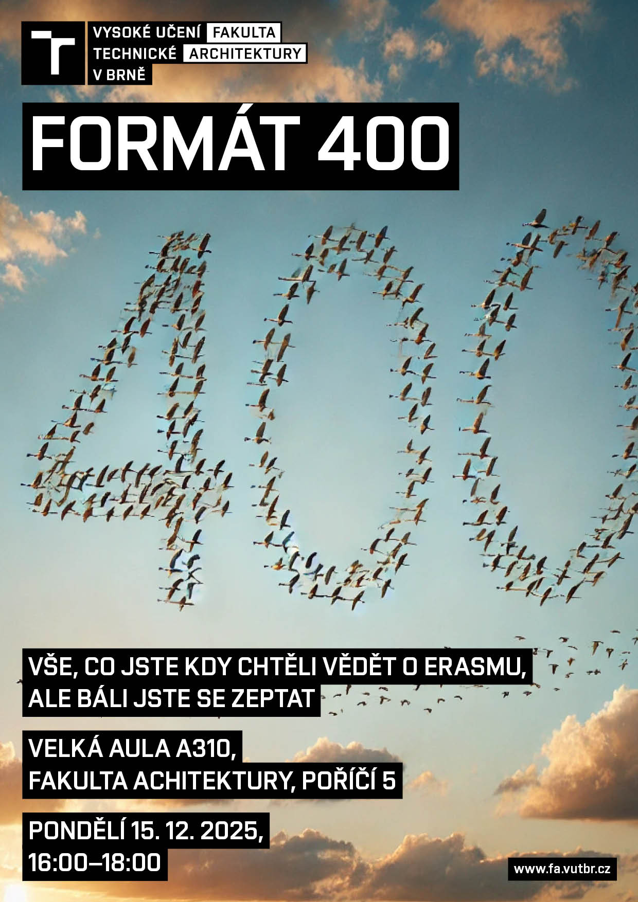 zveme vás na akci FORMÁT 400, kde naši studenti představí své zkušenosti ze zahraničních pobytů v rámci Erasmus+.